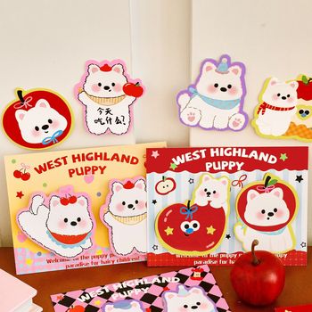 Sevimli karikatür yavru batı yayla beyaz Terrier su geçirmez PVC yapıştırıcı UV kaplı özel şekil Sticker notlar öğrenci planlayıcısı